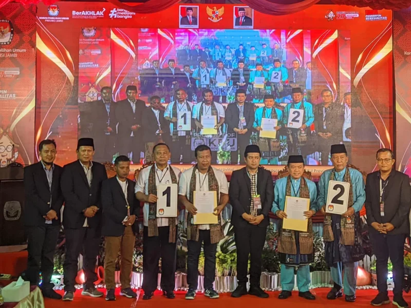Bungotv.co, Kota Jambi – Komisi Pemilihan Umum (KPU) Provinsi Jambi secara resmi mengumumkan nomor urut pasangan calon (paslon) Gubernur dan Wakil Gubernur Jambi di Pemilihan Gubernur (Pilgub) Jambi tahun 2024 di kantor KPU Provinsi Jambi.