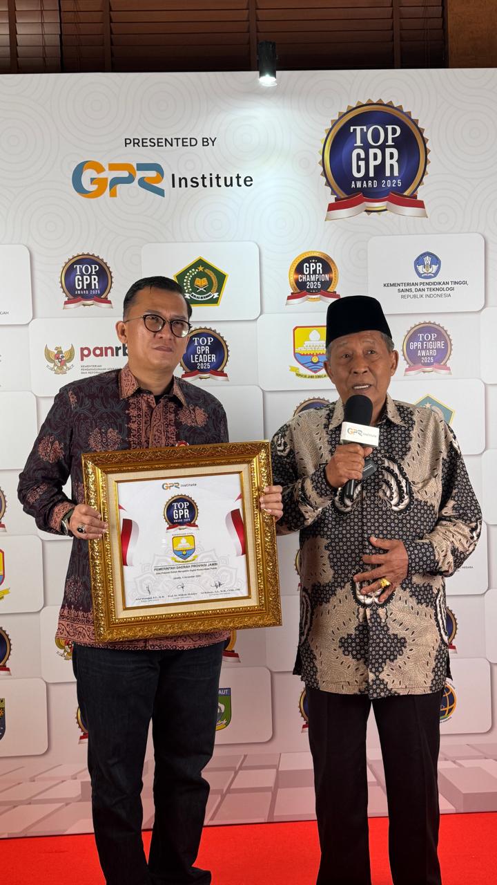 Penghargaan diserahkan oleh Arief Munajad selaku Direktur GPR Institute. Tampak juga Widodo Muktiyo selaku Founder GPR Institute dan Tri Raharjo selaku Co-Founder GPR Institute.