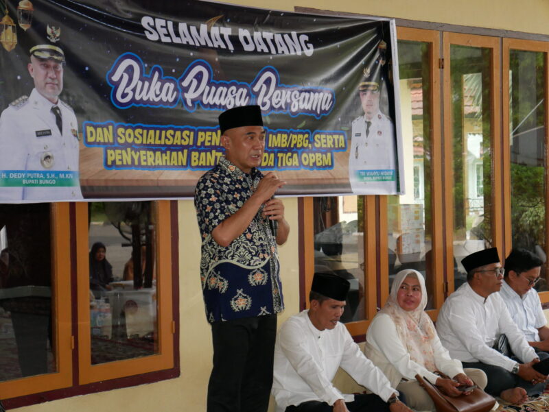 Bupati Bungo menggelar agenda buka puasa bersama sekaligus sosialisasi masif terkait penertiban Izin Mendirikan Bangunan atau IMB, yang kini terintegrasi dalam sistem Persetujuan Bangunan Gedung atau PBG. Sosialisasi ini menyasar seluruh camat, lurah, hingga ketua RT dan RW se-Kabupaten Bungo.